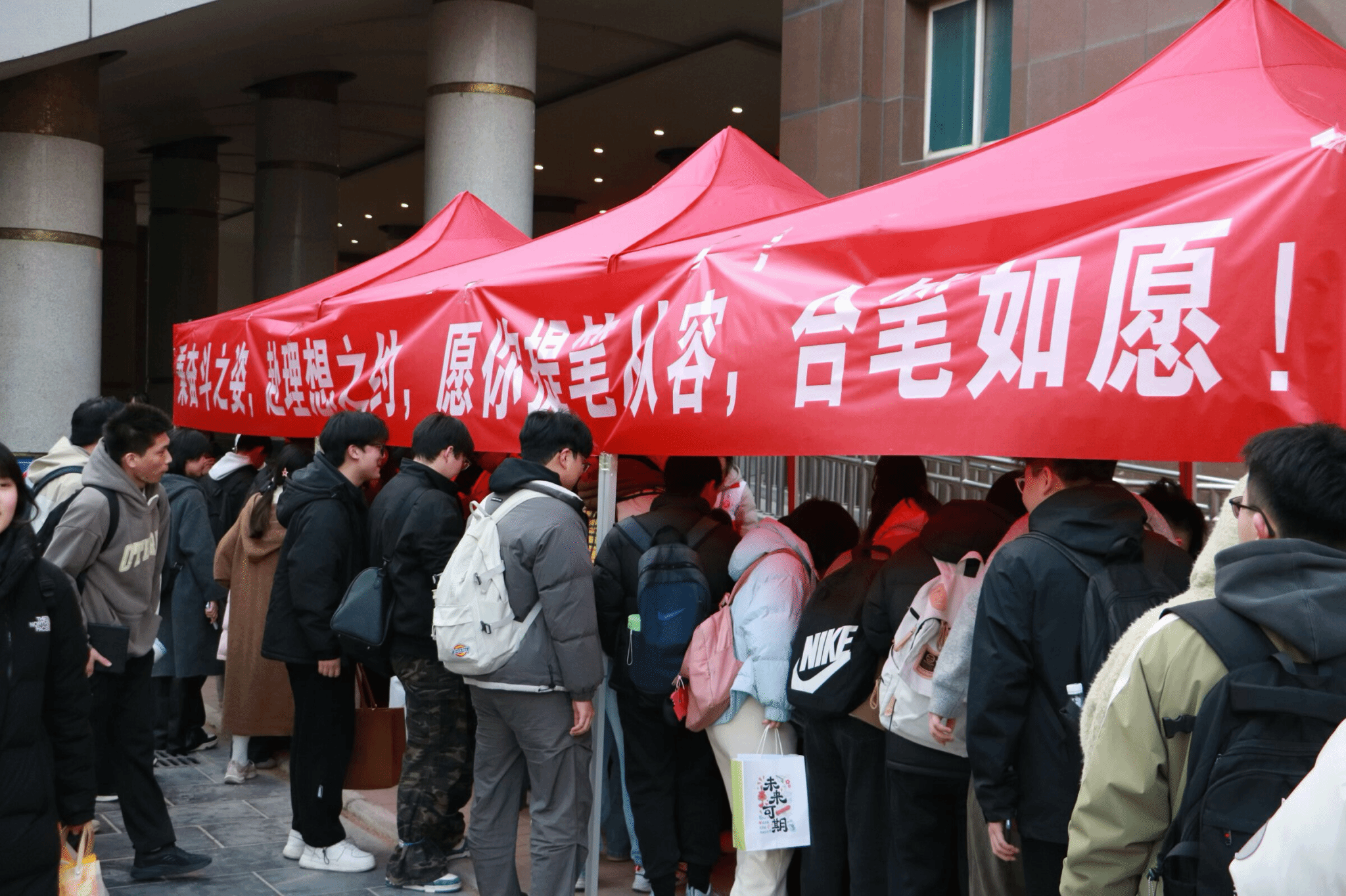 本次活动为期两天,面向全校 2025 届考研学子,紧扣“缓解焦虑、振奋信心” 的核心目标,设置了 “木上生花”“水到渠成”“木挂佳音”“心想事‘橙’”等趣味减压环节。活动现场暖意融融、氛围热烈。平日里埋头题海的考研学子们暂时卸下备考重担,积极参与各项互动:有的在“木上生花”区抽到上上签“决胜考场”,激动地拍照留念;有的在 “木挂佳音” 区写下心愿木牌,将期许寄托于笔尖;有的在 “心想事‘橙’” 环节领取寓意“成功” 的橙子,收获满满的好运祝福。一张张紧绷的脸庞渐渐舒展,轻松的笑声驱散了备考的疲惫,愉悦的笑容成为寒冬里最温暖的风景。这场别出心裁的暖心助考系列活动,不仅舒缓了考研学子们长期备考的焦虑情绪,更让大家切实感受到了学校对考研学子的大力支持与无微不至的关怀。
